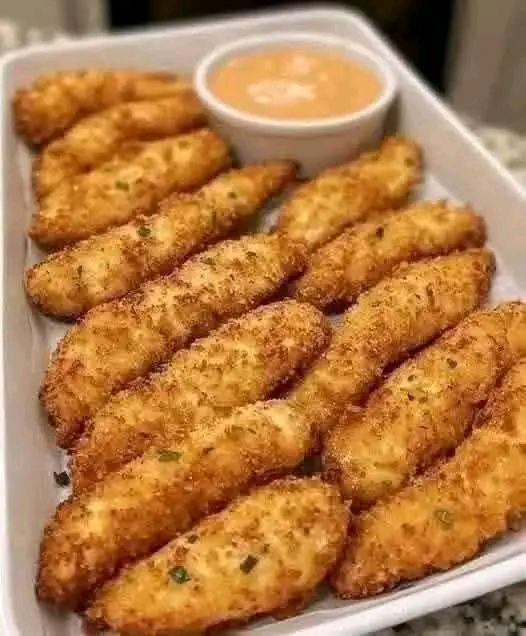Cut the chicken into strips. Mix with egg yolk, garlic, spices, salt and starch.