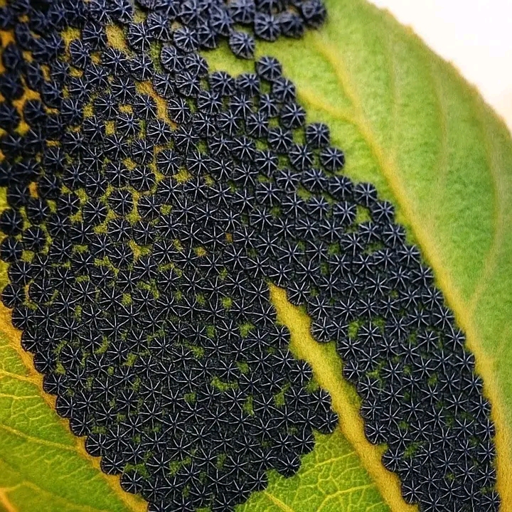 Where should we begin? With those enthralling eggs. The images I saw made them seem like a thin coating of black lace embellishing the leaves. Upon closer inspection, their unexpected beauty becomes apparent. Clusters of these eggs are evidence of the perfect geometry in nature.